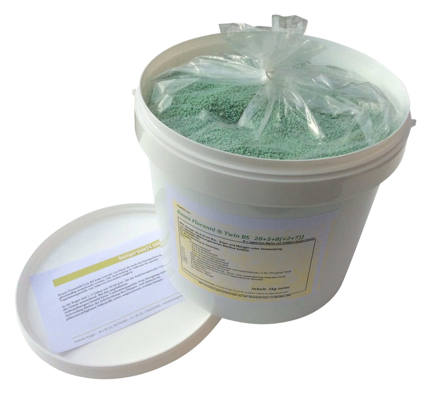 Sie erhalten 5 kg Dünger ( keine Originalverpackung ) im wiederverschließbarem Düngeeimer .Ebenfalls enthalten ist einnen skalierten Meßlöffel mit 15ml Inhalt, leicht gehäuft ca.20 Gramm Langzeitdünger. Die Aufwandmenge entnehmen Sie bitte dem Datenblatt des Herstellers ( bitte klicken )